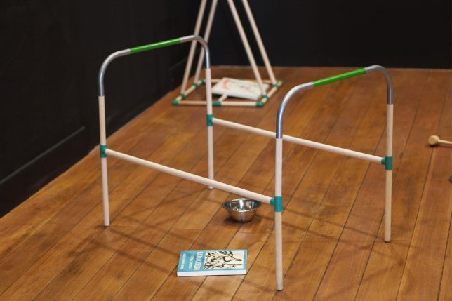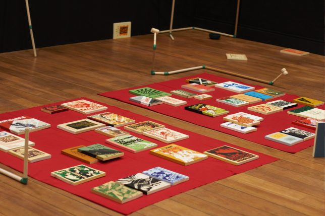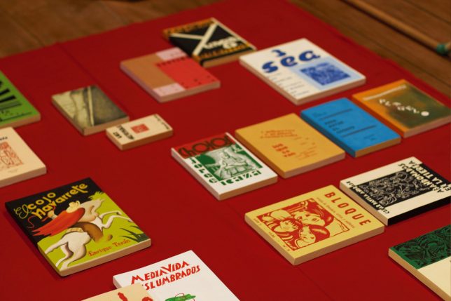 En la descripción de la obra de Ilich Castillo también se lee que es una “instalación que recrea el posible habitáculo de Hugo Mayo o de su personaje Nino Amanolik, como si uno de ellos, en un gesto lúdico y melancólico, dispusiera los rastros de una biblioteca nacional”.
