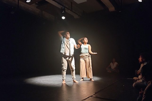 La presentación se registró el miércoles 18 de febrero en la Sala Patrimonial del MZ14 Centro de Producción e Innovación UArtes. Allí, Camacho y Olvera contaron con sus cuerpos en movimiento –en solitario y en una fusión de sentires– sus historias; primero individuales y luego en pareja. “Nos conocimos aquí en la universidad; soy oriundo del cantón Arenillas, provincia de El Oro, donde vivimos en la actualidad y donde somos docentes de danza”.