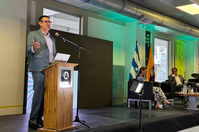 De igual manera, el doctor Astaiza presentó la oferta académica de posgrado de la UArtes, sus estudiantes y personal académico; los resultados de la investigación académica; el proceso de obra relevante; la circulación de contenidos artísticos, con sus eventos presenciales, virtuales e híbridos y los hito, como Inter[•]Actos 2025, Encuentro de ciudades: Guayaquil- Ciudad de México 2024-2025, VI Encuentro de Vínculo con la Sociedad, I Jornada Interuniversitaria de Divulgación de Proyectos de Investigación y Vinculación con la Sociedad y BIENALSUR.