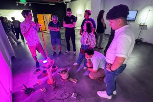 Son parte de la muestra colectiva “Tierras Raras”, donde la segunda cohorte de maestrandos del programa de posgrado en Artes Visuales y Nuevos Medios están presentando sus trabajos finales de titulación, y también en colectivo trabajaron en “EXO VACÍO” (2025), una instalación multimedia generativa inmersiva láser que se exhibe en la Galería CIF del MZ14 Centro de Producción e Innovación UArtes.