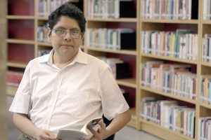 Anthony Guerrero, estudiante UArtes, en el Tambo de Lectura de Esmeraldas
