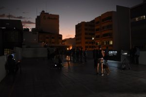 Sensores de movimiento, video proyectado en tiempo real y luces parpadeantes se apoderaron de la terraza del edificio Enrique Tábara este martes 18 de junio. La muestra “Cluster: Encuentro de nuevos medios” llenó de curiosidad a los asistentes, quienes interactuaron con las diferentes obras presentadas. Se vivió un ambiente que combinó lo lúdico con las nuevas tecnologías aplicadas al arte.