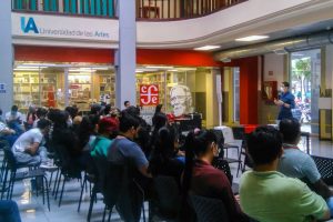 Como parte del Plan de Capacitación del Sistema de Gestión de Seguridad Ocupacional de la Universidad de las Artes, el psicólogo Juan Alvarado, técnico de Riesgos de Trabajo del IESS, dictó el 20 de mayo una charla a la comunidad UArtes sobre los “Factores de Riesgos Psicosociales y Ergonómicos en el Trabajo y Cómo prevenirlos”. Tuvo lugar en la Plaza Pública del Centro de Producción e Innovación MZ14.