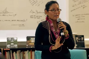 Docente UArtes Ángela Arboleda, en el teatro foro «El expreso de la tarde»