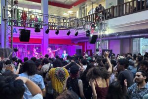 “Justo soy hija de eso”, respondió Juana Monks, vocalista de Swing Original Monks, al opinar sobre la transnacionalidad abordada en la quinta edición de Universos Sonoros. Nathalia Madrigal, nombre de pila de la artista, se presentó junto a Gabriel Baumann y otro de los integrantes de la agrupación en la Plaza Pública del MZ14 en el cierre de las tres jornadas de la cita organizada por la EAS.