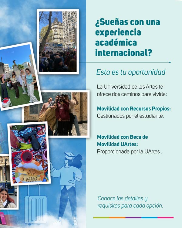 En el marco de los convenios internacionales que mantiene la Universidad de las Artes, la Dirección de Relaciones Internacionales invita a sus estudiantes de grado a participar en un intercambio académico en instituciones extranjeras en el segundo semestre del 2026.