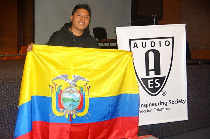 “Jonathan Chafla respondió junto a otros estudiantes de la Escuela de Artes Sonoras a la convocatoria que extendió AES Colombia a los miembros de la Asociación en Ecuador y logró llevarse el premio con un trabajo realizado en una materia impartida en las aulas de clase de nuestra universidad”, indica Daniel Orejuela Flores, docente de la UArtes.