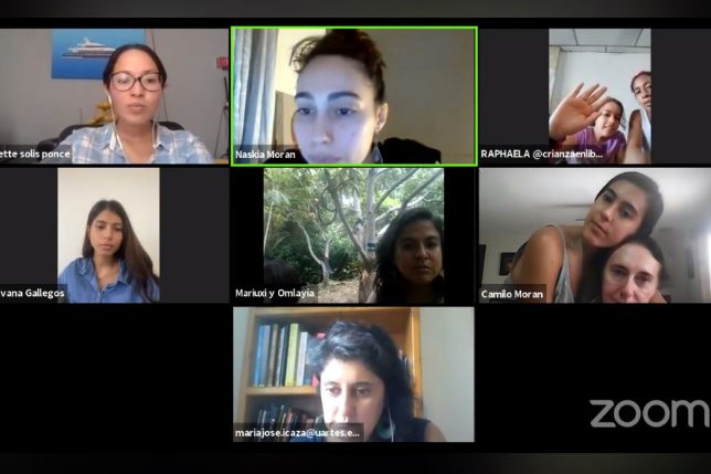 La actividad que abrió las jornadas se inició a las 11:00 y prolongó hasta las 12:00; niñas, niños y adolescentes participaron en un encuentro como representantes de los diferentes proyectos de iniciativas para soñar futuros de la educación en artes. Intervino como moderada Gilda Sánchez, especialista de Educación Continua UArtes.