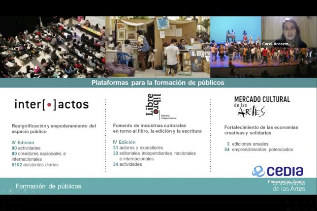 Este ciclo fue una respuesta a la realidad que atraviesan los emprendedores y profesionales en arte y cultura ante las restricciones de lo presencial. Nueve meses después se confirma que este sector continúa deprimido y que, sin importar su capacidad de resiliencia y de reinventarse, continúa contraído en lo económico.