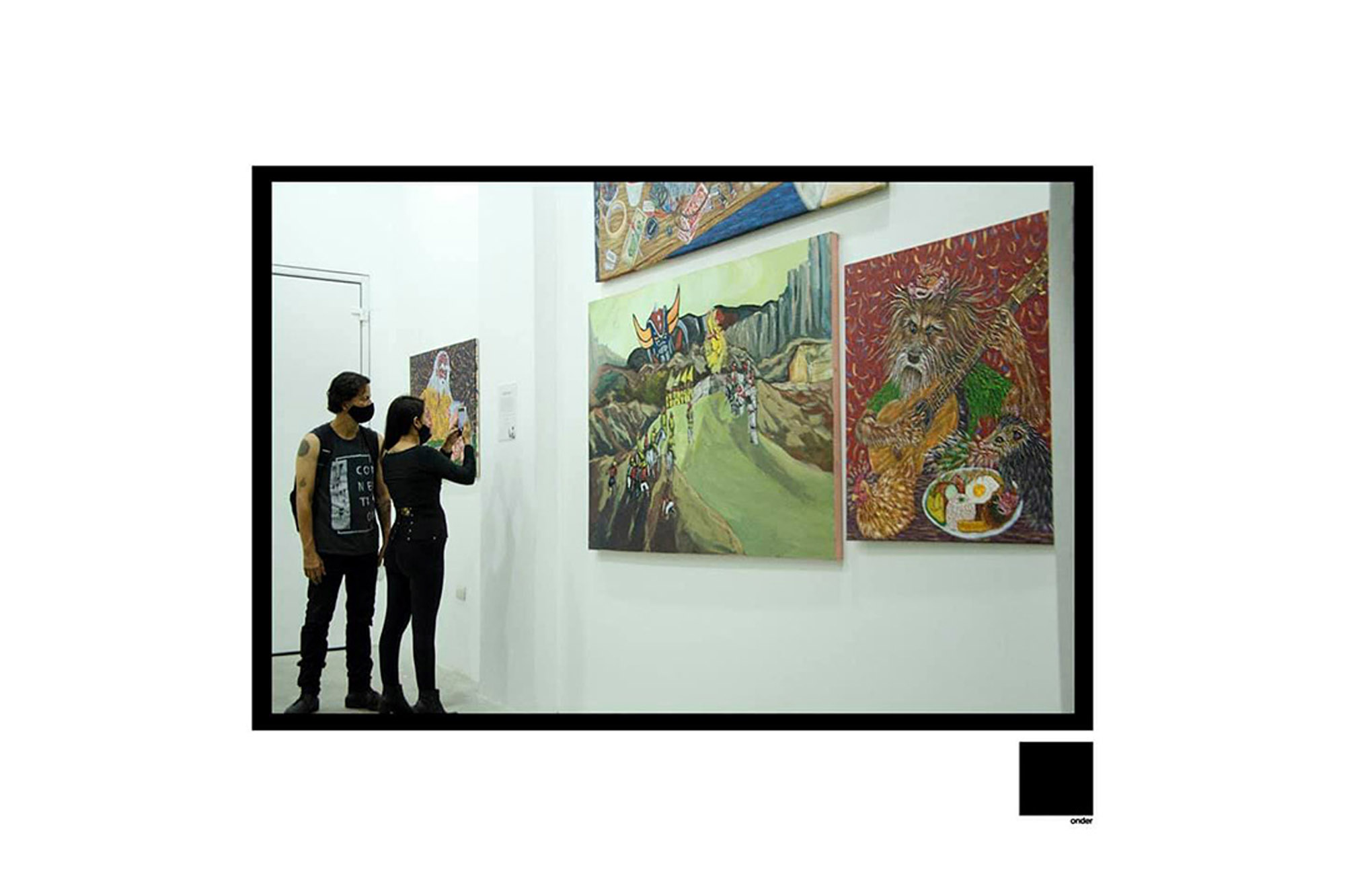 En sus once piezas expositivas, Diego Kang se centró en cómo ha influenciado la cultura de entretenimiento japonesa a aquellos nacidos entre finales de los ochenta y noventa, apropiándose de personajes de anime y extrayéndolos de su naturaleza bidimensional en movimiento para colocarlos en actividades ordinarias. Alfredo Castillo, quien intervino con quince obras, hizo alusión al arte ecuatoriano contemporáneo local y al uso de referencias culturales y mediáticas para descontextualizarlas por medio de una sátira bastante cruda y directa, sea políticamente correcta o no. Las siete composiciones pictóricas de César Sánchez surgieron a partir de lo cercano y familiar, acorde a la experiencia de los hábitos y de la rutina, usando una serie de elementos recopilados de diversas fuentes: trabajos, conversaciones, caminatas, anécdotas, archivos familiares y convencionalismos sociales.