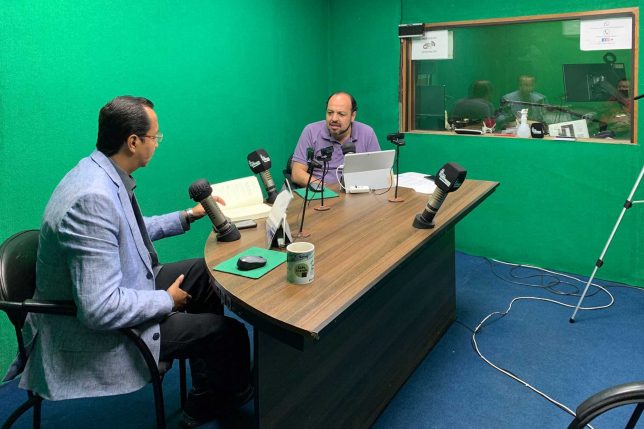 El doctor Pablo Cardoso (d), director del ILIA y del Observatorio, en una entrevista en Radio Sono Onda.