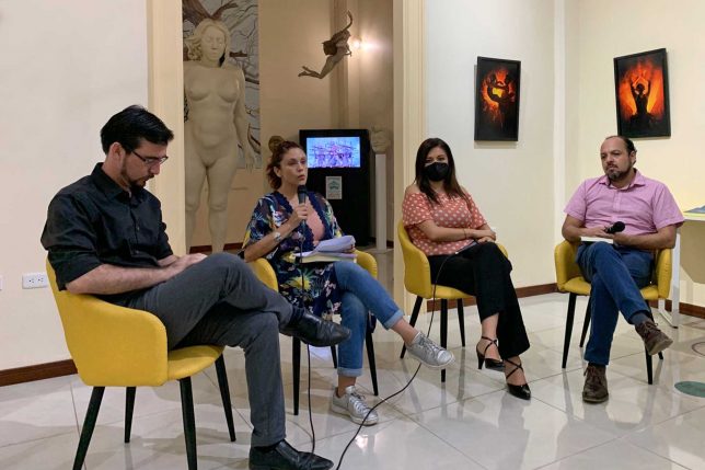En uno de los conversatorios constan Fidel Intriago, director de la CCENM; Pía Alcívar, presidenta de la Fundación Clave; e, Isabel Ron, directora de Cultura y Patrimonio del GAD Municipal de Portoviejo.