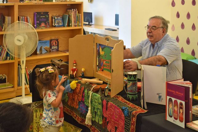 Para el galardonado escritor –cuya producción literaria abarca también la novela, la crónica, la poesía, la memoria, las recopilaciones, entre otras–, la Sala Ría no le era desconocida, pues allí estuvo el lunes 11 con el curso/taller Kamishibai, el pequeño teatro de papel y el arte de contar cuentos japoneses que el autor ha incorporado a su trabajo y repertorio. En ese encuentro estuvieron con los niños, padres, profesores, gestores culturales y mediadores de lectura.