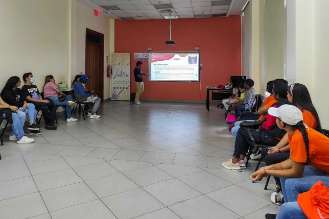En la Universidad de las Artes se desarrollan desde noviembre pasado los talleres del Proyecto Distritos RODDNA. Uno de los facilitadores es estudiante de la UArtes, señala Maholy Vernaza, asesora nacional de la organización.