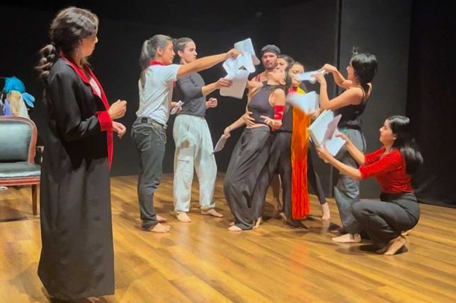 “Trabajar con este equipo marca un sentimiento indeleble en mi vida teatral, sentí que pude conectar con cada uno y aprender un pensamiento diferente que los hace únicos, ya que de ahí nace lo propio”, expresa Juan Fajardo, estudiante que integra el colectivo que presentó la obra. Con él, Aylin Vásquez, Gabriela Chang, Mily Freire, Keyla Maldonado, Salomé León, Sharmilla Ulloa, Miguel Soria y Pierrluigi Burgos.