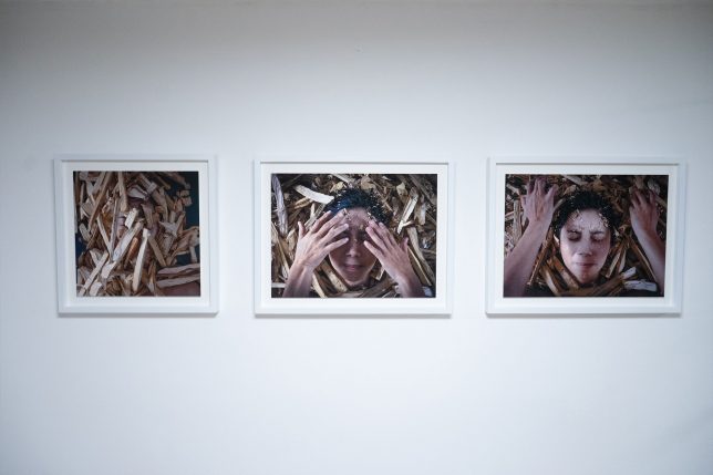 La diseñadora, fotógrafa y docente cuencana Sonia Pacheco nos propone una experiencia íntima que rezuma vida. El tránsito de Aviva. Derivas desde la sobrevivencia nos propone un primer punto de salida, su propio cuerpo, como testimonio de la sobrevivencia a la violencia de género, y nos conduce hacia el canto a la vida, a la capacidad ya no solo se resignificar la experiencia traumática, sino, sobre todo, de resurgir de ella acompañada, ahora, de su mirada fotográfica volcada hacia su interior que, en definitiva, nos mira con la conquista íntima como triunfo ante la violencia, el desamparo y el horror. Sus autorretratos frontales con elementos de la naturaleza enmarcando y reafirmando la vida se proponen como resistencias ante los discursos sociales sobre la victimización de las mujeres –dobles víctimas, además, por la mirada social culpabilizadora–.