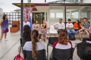 Las docentes Lorena Toro y Vanessa Pérez manifestaron su emoción por sus palabras y la responsabilidad del trabajo realizado por estudiantes que realizan sus prácticas preprofesionales, pues es una alegría ser testigo de cómo van encontrando su propia voz y su propio espacio, donde su arte pueda manifestarse por todo el país.