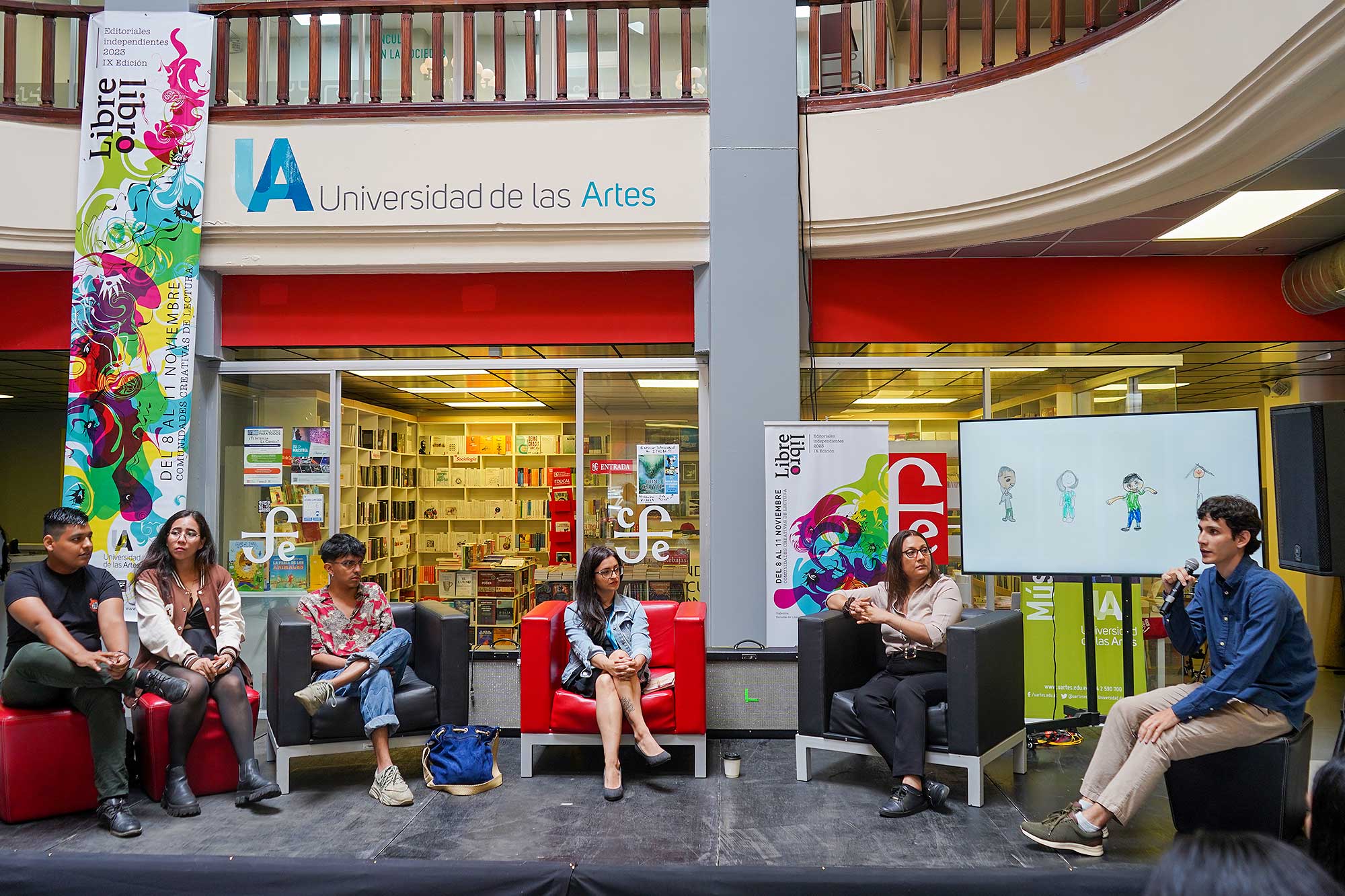 Empezamos Libre Libro con su edición dedicada a las comunidades creativas de lectura, Bienvenidos. Con esas palabras y júbilo, la docente y directora de la Escuela de Literatura, María Alejandra Zambrano dio inicio a un conversatorio que acogió como premisa los 10 años de la Universidad de las Artes, que se cumplirán en diciembre próximo, y la temática del encuentro de editoriales independientes y feria de publicaciones 2023.