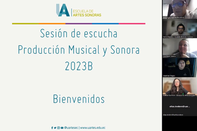 Diez estudiantes de Producción Musical y Sonora (PMS) de la Universidad de las Artes presentaron en modalidad virtual sus proyectos de titulación 2023B en una sesión de escucha que emocionó a quienes se conectaron ayer, lunes 15 de enero de 2024, vía Zoom. Autoridades universitarias, docentes, estudiantes, familiares y amigos coincidieron en el alto nivel de los productos artísticos desarrollados con dedicación por los próximos graduados.