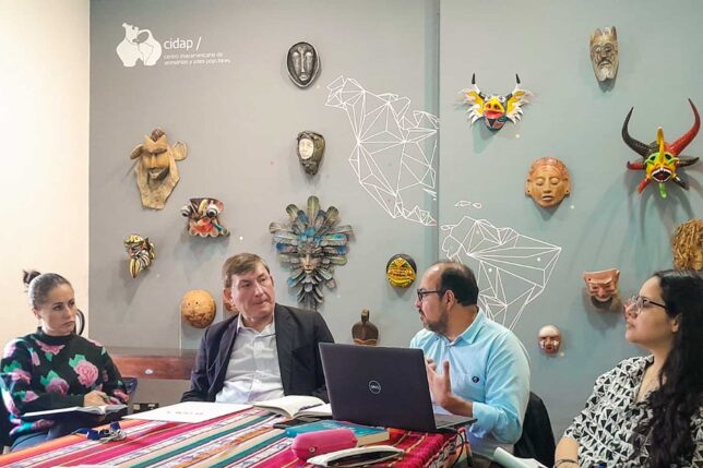 En días pasados, el director del Observatorio de Políticas y Economía de la Cultura UArtes, Pablo Cardoso, mantuvo en la capital azuaya reuniones con las autoridades de la Universidad de Cuenca (UCuenca), cuya rectora es la doctora María Augusta Hermida, y la Organización de Estados Iberoamericanos (OEI), así como otras instituciones aliadas, como la Universidad Politécnica Salesiana (UPS), el Centro Interamericano de Artesanías y Artes Populares (CIDAP), la Prefectura del Azuay y la Casa de la Cultura Ecuatoriana Núcleo del Azuay.