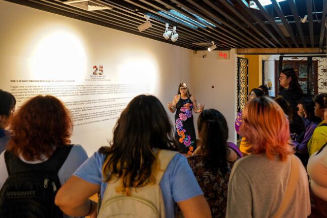 Por el Día Internacional de la Mujer, la Secretaría de Bienestar Universitario (SBU) de la UArtes organizó una visita de los estudiantes de Nivelación al Salón de la Mujer 2024 de la Casa de la Cultura Núcleo de Guayas (CCNG), que preside la doctora Martha Rizzo. Este año la cita llegó a la edición número 25 bajo la dirección de la investigadora, curadora y gestora cultural María Fernanda López, Ph.D., docente de la Universidad de las Artes.