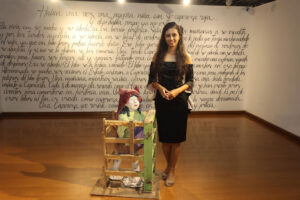 La obra ganadora del salón, titulada “Caperucita Roja”, fue concebida como una crítica por las víctimas de violencia. Su autora escribió un cuento en referencia a su creación. Es tridimensional y rompe con todo lo que tiene que ver con la vida y misión de la mujer por toda la carga que tiene de reflexión. “En esta edición, el salón reflexiona sobre la violencia en nuestro país. Si ustedes pueden leer el cuento que acompaña la escultura van a poder entender de qué se trata, pero creo que una niña es lo que estamos viendo. Una niña que está enjaulada y tiene un balazo en la frente, así mueren nuestros niños por balas cruzadas cuando están haciendo los deberes en medio del Sol. Así han muerto muchísimos niños y niñas”, dijo López.