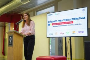 Antes de iniciar la jornada de este viernes, programada de 09:00 a 13:00 con la implementación de cinco mesas de trabajo y una plenaria, la rectora de la UCuenca indicó a InfoUArtes que el foro es un espacio en el que se quiere congregar a la mayor cantidad de representantes de la academia y organizaciones sociales y no gubernamentales para dialogar en torno a temas identificados colectivamente, como inseguridad, pobreza, desempleo, crisis climática, protección de la naturaleza, medios de vida, derechos laborales, seguridad social, soberanía alimentario y democracia.