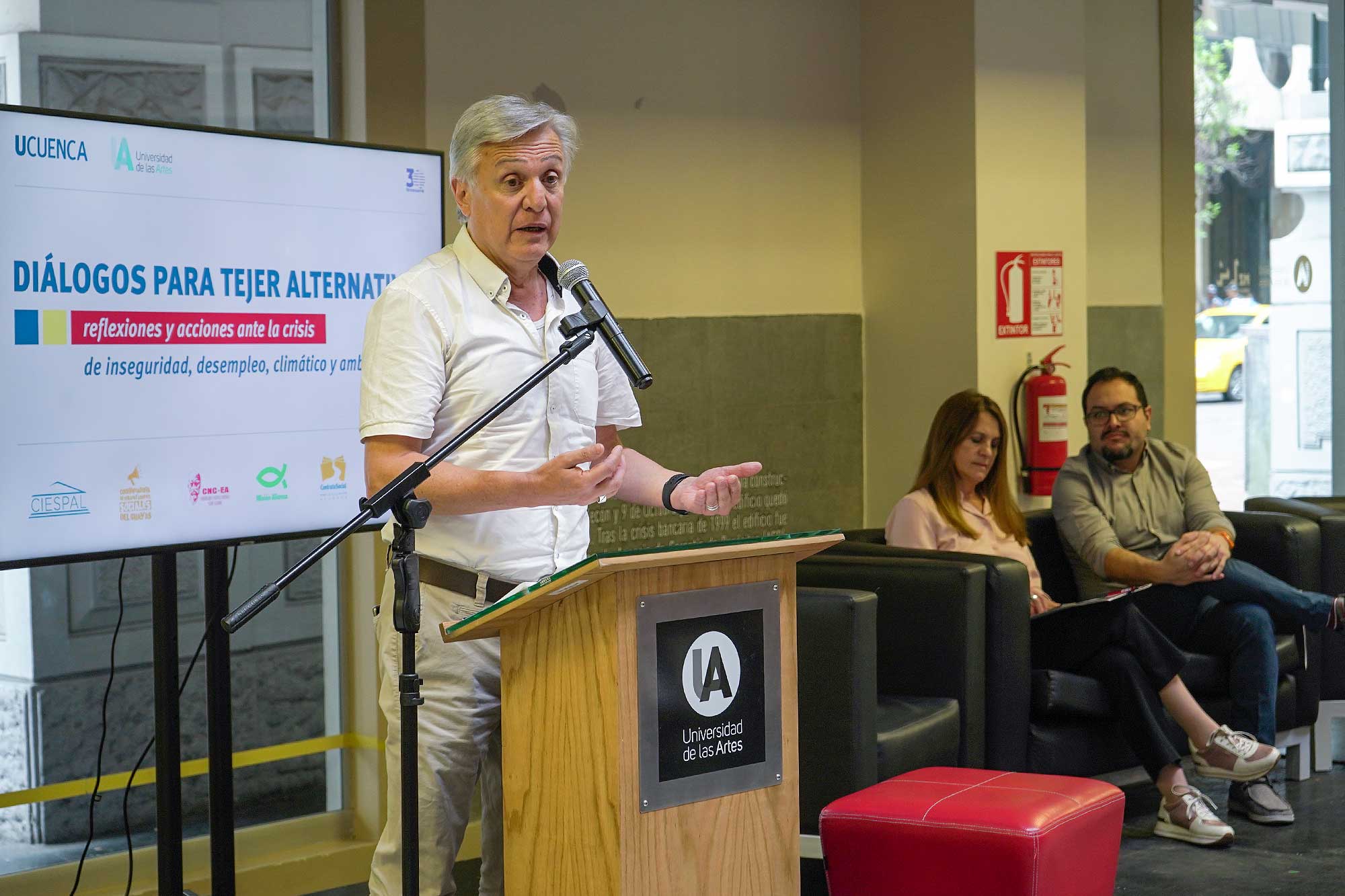 Con “Diálogos para tejer alternativas, reflexiones y acciones ante la crisis”, como se denomina el foro, buscamos perspectivas y soluciones para los desafíos sociales, económicos y medioambientales identificados por la comunidad, se indica desde la Universidad de Cuenca, cuya rectora, arquitecta María Augusta Hermida, Ph. D., presidió junto a nuestro rector, doctor William Herrera, la actividad en el MZ14 de la UArtes.