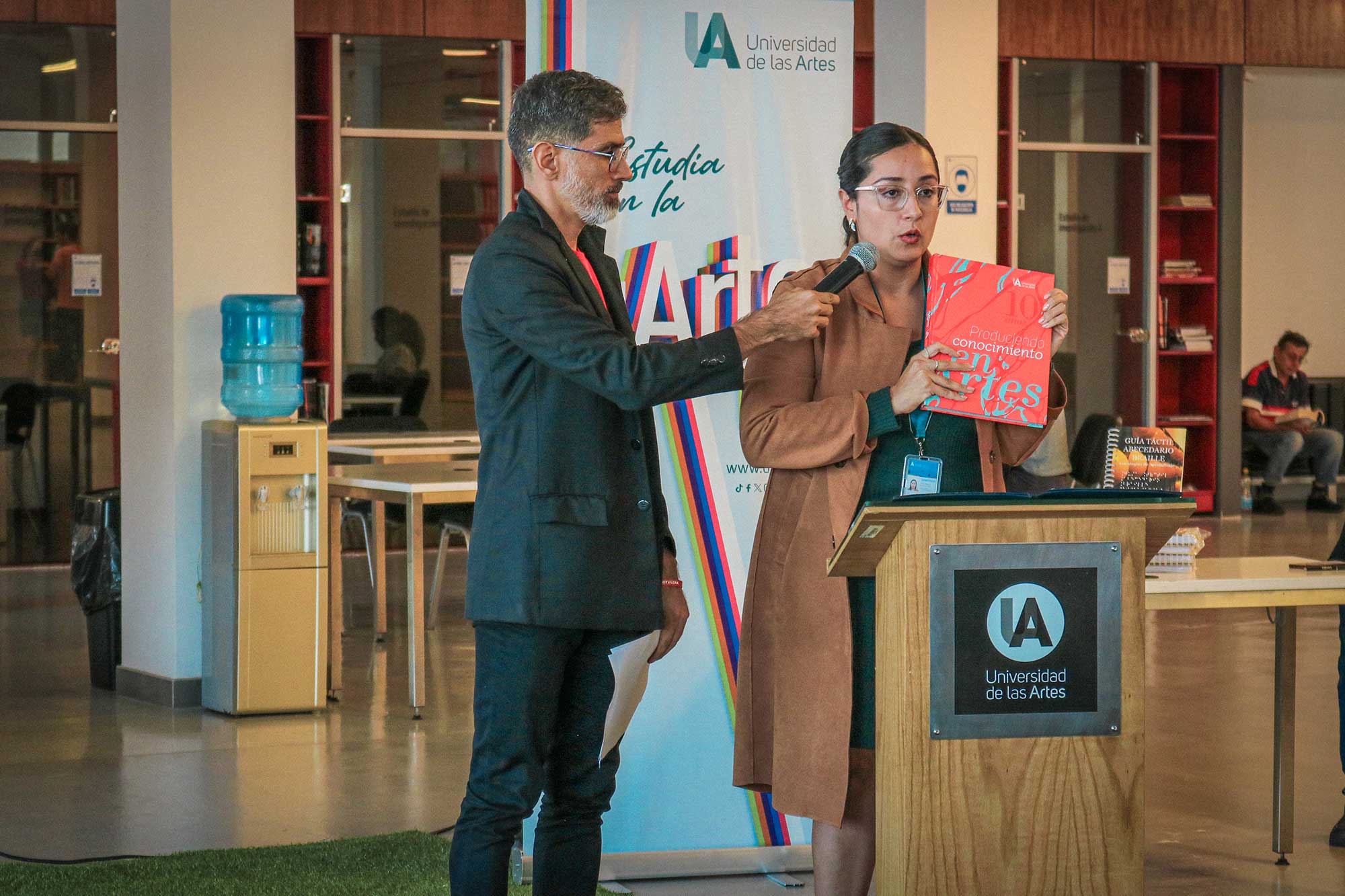 En la ceremonia por los cinco años de la Biblioteca de las Artes, celebrada el pasado viernes 26 de abril en el tercer piso de su patrimonial edificio, la Dirección de Comunicación (Dircom) de la Universidad de las Artes realizó la presentación de la revista “10 años produciendo conocimiento en artes”.