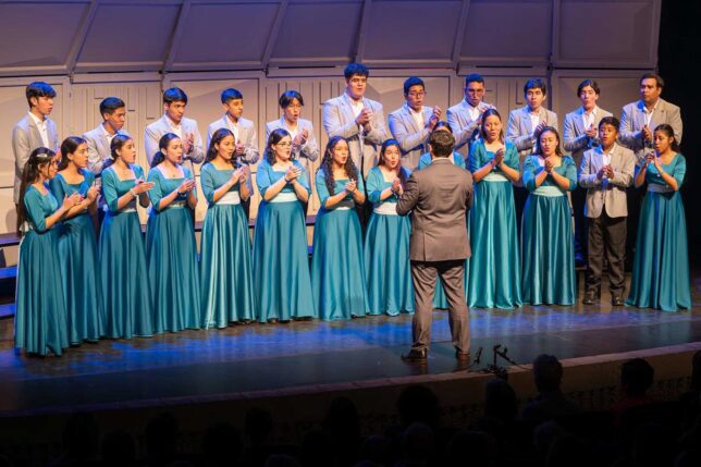 Es el Coro Juvenil Schola Cantorum que dirige Enrique Silva Gil, quien cuenta con una maestría del Westminster Choir College de Princeton, Estados Unidos, y es docente de la UArtes.