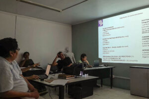 Terminan con ese documento –como inicio de su proceso de titulación– para escribir su anteproyecto de tesis, pero también deben terminar con una producción sincera, ampliada y personalizada. “Quizás esa misma metodología es la que hemos tratado de llevar al taller, pues lo que estamos haciendo en estas primeras sesiones es un diagnóstico de lo que ha pasado con nuestra carrera, con nuestra malla curricular”.