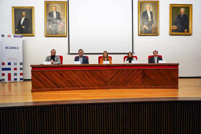También de la Universidad de Cuenca, los doctores Montserrat Jérves y Juan Leonardo Espinoza, vicerrectores de Investigación y Académico, en su orden; doctora Ximena Peñaherrera, directora de Cultura; y arquitecto Juan Pablo Carvallo Ochoa, director de Innovación y Transferencia Tecnológica.