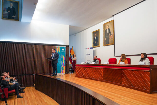 En el aula magna Mario Vintimilla de la Universidad de Cuenca, se realizó este lunes 30 de septiembre el acto inaugural del 4to Encuentro de Políticas y Economía de la Cultura, una iniciativa del Observatorio de la Universidad de las Artes que se extenderá hasta el 4 de octubre y que en este 2024 fue coorganizado por la institución anfitriona y la Organización de Estados Iberoamericanos para la Educación, la Ciencia y la Cultura (OEI, Ecuador).