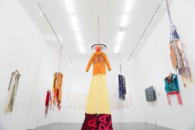 El tejido, cargado de historias y manos que luchan, se convierte en un grito hecho tramas, en una aparición fantasmagórica que sacude. Q Galería, ubicada en Quito (Diego de Robles y Pampite, junto a la entrada principal de la USFQ), da cuenta así de la muestra “Apariciones poéticas callejeras” de la artista visual y alumnus Diana Gardeneira; se inauguró el 17 de octubre y mantendrá hasta este 8 de noviembre.