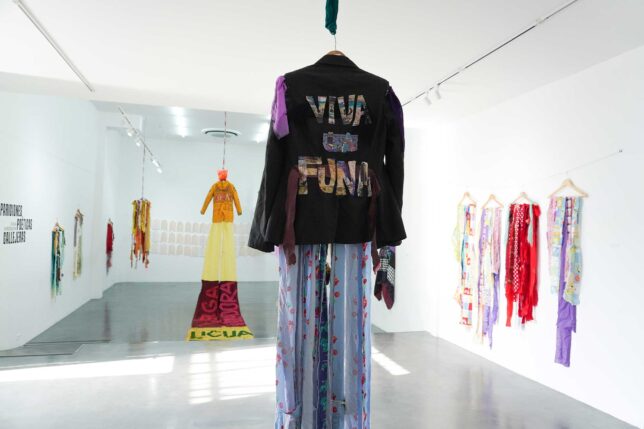 Indica también que, en “Apariciones poéticas callejeras”, el público encontrará obras que dan un giro a lo familiar: trapos y vestimentas cotidianas, ganchos que sostienen mucho más que vestimentas; sostienen una historia de fuerza e indignación. “Con cada hebra y cada pliegue, quiero dar vida a espectros de vidas limitadas y cortadas abruptamente por los femicidios. Porque, como esta exposición expresa con fuerza, la moda también es política, y el textil y la música son gritos sororos que se entretejen e invaden todos los espacios de resiliencia femenina y disidente”.