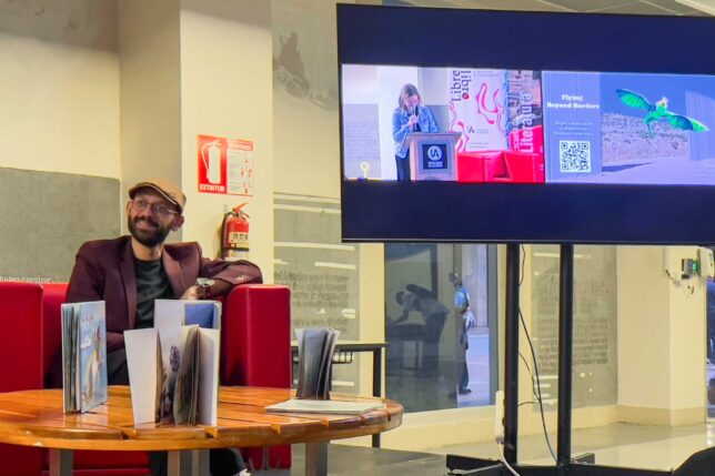 Para concluir, el expositor anotó que la literatura infantil palestina aborda de manera única los temas del realismo mágico y la literatura poscolonial, entrelazando estos géneros en un marco poderoso. En el contexto del realismo mágico, a menudo retrata soluciones fantásticas a luchas reales, como superar muros y fronteras. Historias como “Las Amapolas” y “La mariposa de Nazaret” usan mariposas para levantar a los personajes por encima de los muros, simbolizando una simple y elegante resistencia a las barreras físicas.