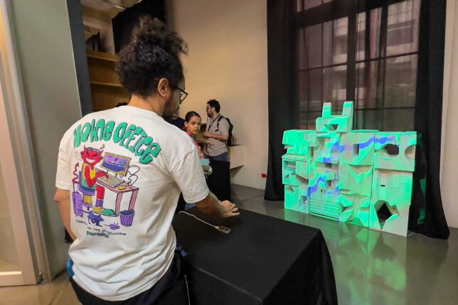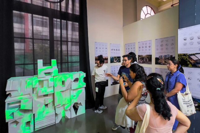 En la tercera instalación, “Exploraciones dinámicas”, se dieron a conocer los resultados de un taller colaborativo entre la Universidad de Guayaquil y la Universidad de las Artes. Sus participantes, se anotó, aprendieron técnicas de modelado digital en 3D con el software Rhino, el cual les permitió explorar formas geométricas simples y aplicar inteligencia artificial para darles aplicaciones en el mundo real. Las piezas de este proceso creativo permitieron al público interactuar con un sensor de movimiento para pintar digitalmente sobre las creaciones resultantes.