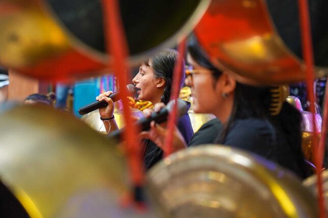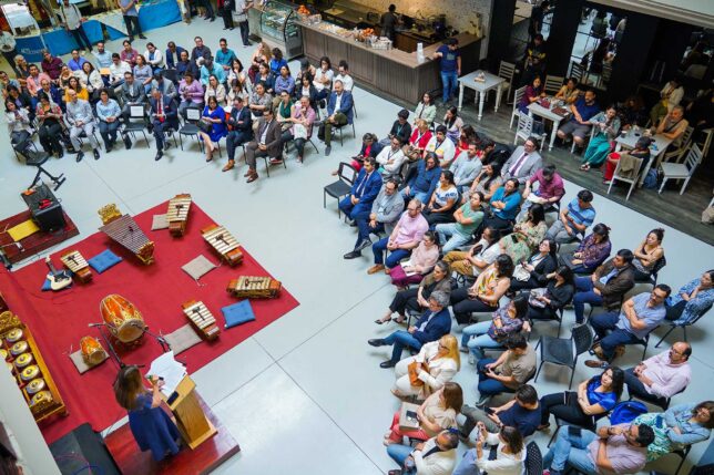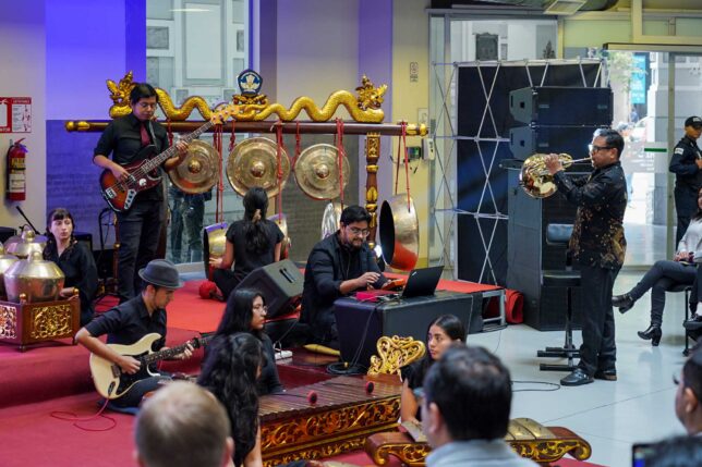 La inauguración del congreso concluyó con la presentación del Ensamble de Gamelán, que es parte del relacionamiento e internacionalización de la Universidad de las Artes con la República de Indonesia. Muñiz indicó que forman parte del proyecto los docentes intérpretes: Andrey Astaiza, Grecia Albán, Dario Dávalos y Carlos Albán, junto con los estudiantes de la Escuela de Artes Sonoras: Adriana Garcia, Evelyn Guaman, Sebastian Mite, David Rojas, Michael Rojas, Aisha Granados, Fabiana Nuñez, Ashley Moncayo y Daniela Mascaró, quienes brindaron a la audiencia la composición “OM”.