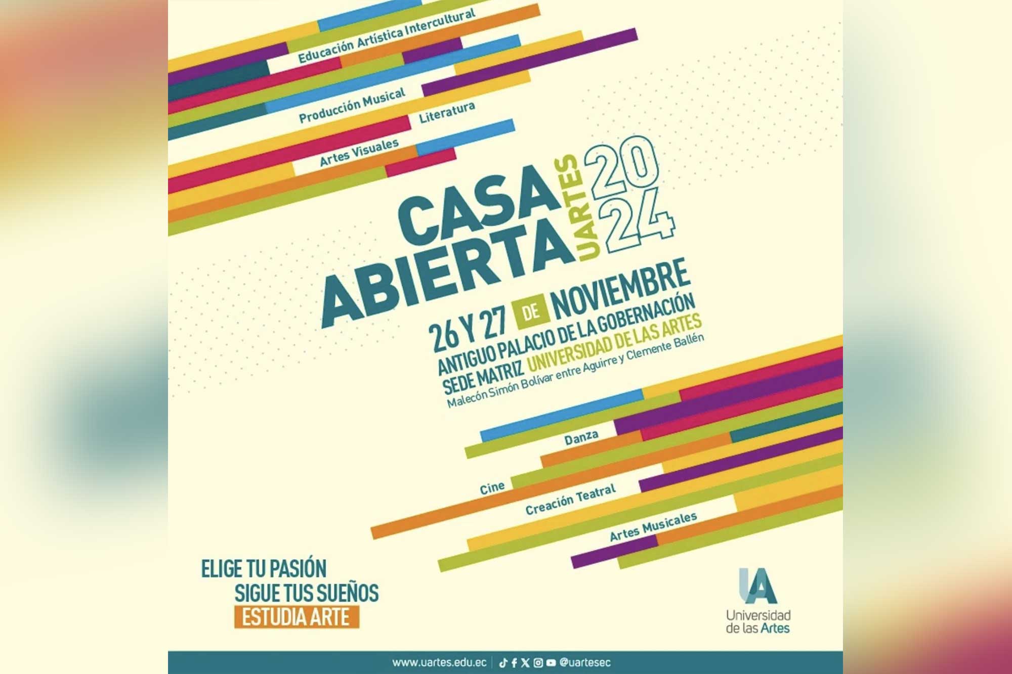 La Universidad de las Artes abrirá sus puertas el martes 26 y el miércoles 27 de noviembre en una Casa Abierta concebida para dar a conocer no solo sus espacios e instalaciones, sino su oferta académica de pregrado y posgrado, su Modelo Educativo y Pedagógico y todos los servicios que ofrece como institución de educación superior pública. Habrá presentaciones en vivo, talleres interactivos, recorridos guiados y stands informativos.