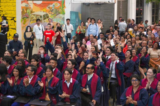 El vicerrector académico indicó que, a través de los proyectos artísticos y comunitarios que las graduadas y los graduados han elaborado durante su tiempo en la UArtes “hemos sido testigos de cómo el arte puede crear espacios donde diferentes voces, saberes y formas de ver el mundo coexisten y dialogan, donde el disenso es productivo y donde las diferencias enriquecen en lugar de dividir. Esta capacidad del arte para fomentar una intersubjetividad intercultural es precisamente lo que necesitamos para enfrentar los desafíos de nuestro tiempo: la polarización social, la crisis climática, la desigualdad estructural. Por eso, reducir las artes a carreras no prioritarias es ignorar su potencial transformador en la construcción de una sociedad más justa y equitativa”.
