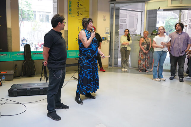 Fotos: las imágenes corresponden a la muestra en su inauguración y en las varias series que la componen; su autora en la presentación de su trabajo y junto a quienes la visitaron en su apertura. En portada, la visita guiada en Plan de Viernes, con la participación de autoridades UArtes y funcionarios administrativos.