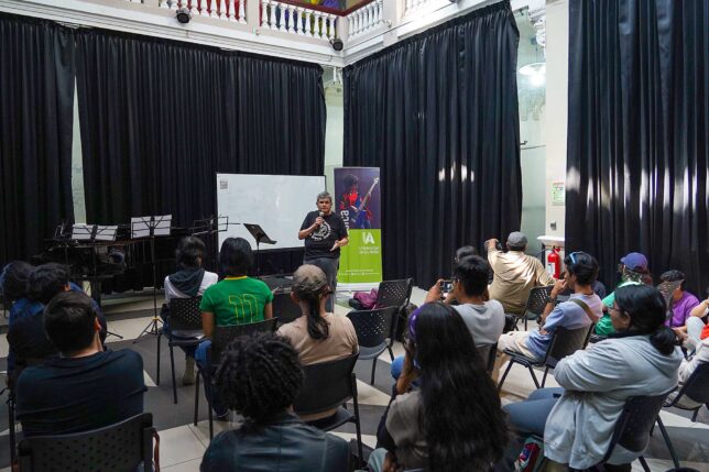 Lo que comenzó como una clase magistral sobre armonía terminó convirtiéndose en un vibrante intercambio entre músicos y público, donde la teoría se mezcló con la práctica y el conocimiento académico se amplificó con la sensibilidad colectiva.