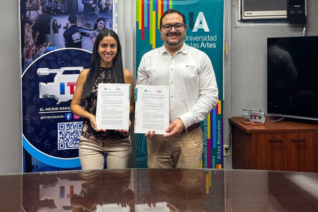 La Universidad de las Artes (UArtes) y el Instituto Superior Tecnológico Universitario de Estudios de Televisión (ITV) firmaron un Convenio Marco de Cooperación Interinstitucional, en el cual se establecen bases y criterios de un trabajo colaborativo para el beneficio integral de ambas IES, principalmente para sus estudiantes. Suscribieron el documento nuestro rector, doctor William Herrera, y la rectora del ITV, María Paula Adum Zajar, MBA.