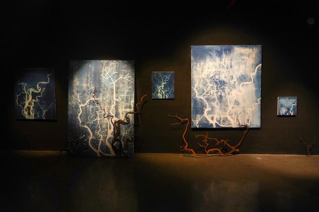 Agrega que el vínculo inicial que encontró y que luego relacionó con intereses previos que ya tenía, “porque creo que mi trabajo como artista siempre ha tratado de direccionar mis esfuerzos a reflexionar sobre el paisaje y me di cuenta que la forma de los ríos de Guayaquil es como de árboles y sus ramificaciones”.