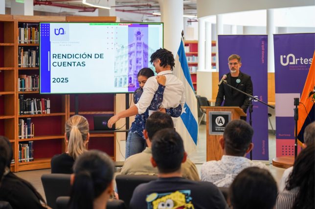 La Empresa Pública de la Universidad de las Artes (UArtes EP) presentó el informe de rendición de cuentas de la gestión que desarrolló en el 2025. El acto tuvo lugar en la Biblioteca de las Artes y lo presidió su gerente general, economista Nathalie Vanegas Ripalda, quien en su exposición hizo cuatro abordajes: Contexto institucional, Proyectos y servicios, Administración y finanzas y Lo nuevo en el 2026.