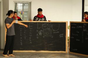 En Misión Alianza de Monte Sinaí, el artista Julio Huayamave, representante de Planthamé Sur Realidades, presentó los resultados de la residencia comunitaria que realizó en ese sector de Guayaquil. La desarrolló tras ganar la convocatoria pública que hizo para su tercera edición “Manglar 2024: Encuentros de arte, educación y espacio público”, evento organizado por la Escuela de Literatura y su carrera de Educación Artística Intercultural, con el apoyo del Departamento Transversal de la Universidad de las Artes.