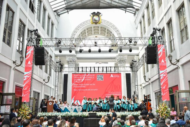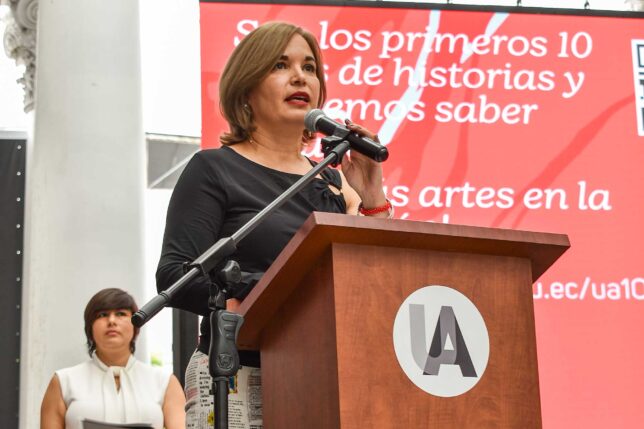 En comunidad y en vínculo con autoridades seccionales, universitarias y representantes de las organizaciones con las que trabaja, la UArtes celebró 10 años de creación. La sesión solemne fue el 7 de diciembre en Pasaje Illingworth, donde dio sus primeros pasos, dijo el rector William Herrera. En la mesa directiva lo acompañaron, la vicealcaldesa Blanca López; los vicerrectores Olga López y Bradley Hilgert; y, el presidente del CES, Pablo Beltrán.