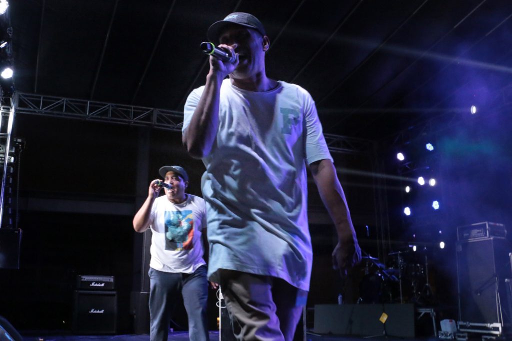 El dúo guayaquileño A2H, integrado por los raperos “El Cholo” y “K-mada”, improvisó unas cuantas frases al inicio de su presentación, a fin de entrar en ambiente y calentar el escenario. A2H interpretó temas como “Subjetivo”, “Sonido adictivo” y “Compromiso” e hizo levantar manos y mover cabezas al ritmo de los bombos y cajas característicos de su género musical.
