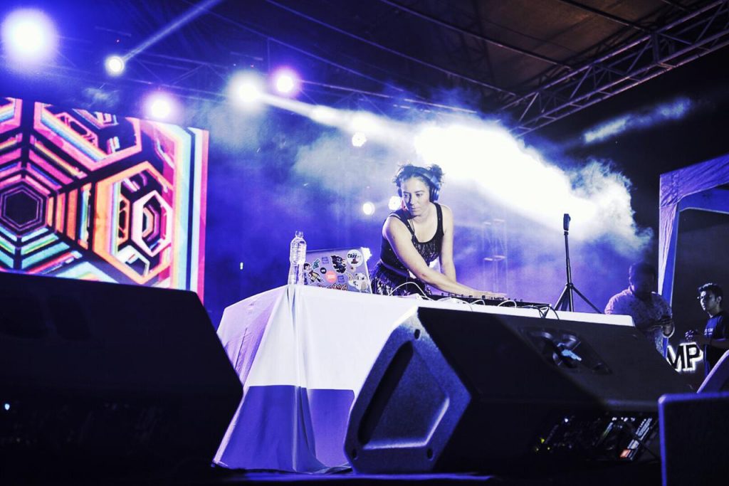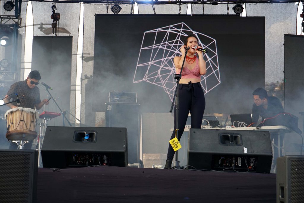 La siguiente intervención fue la de Bernarda Ubidia, docente y coordinadora musical de la UArtes. Ella brindó un DJ set cargado de sonidos electrónicos y varias mezclas.