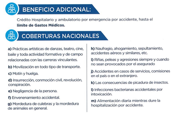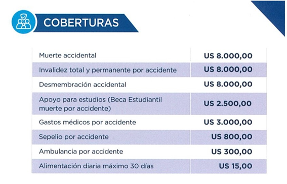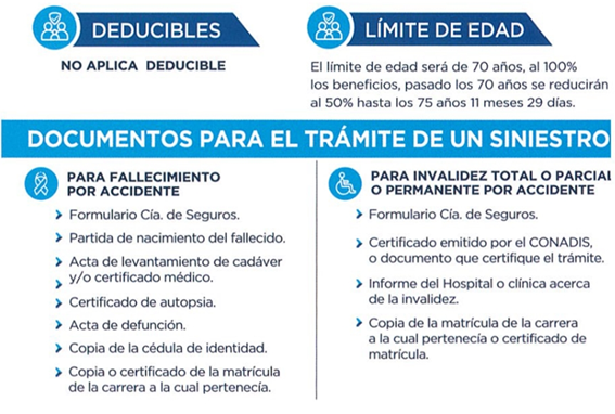 No. Cabe recalcar que, en caso de accidente o fallecimiento del estudiante en cualquier provincia o ciudad de Ecuador,también podrá dar uso siempre y cuando se encuentre MATRICULADO, también cubre casos que se describe a continuación: